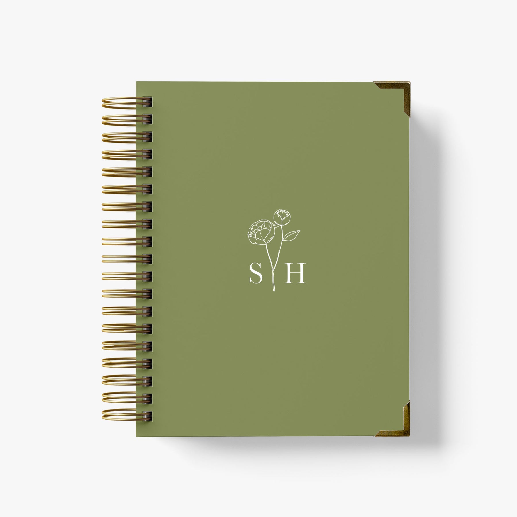 Our LGBT wedding planner books are all-inclusive and gender-neutral, shown in a delicate peony monogram design
