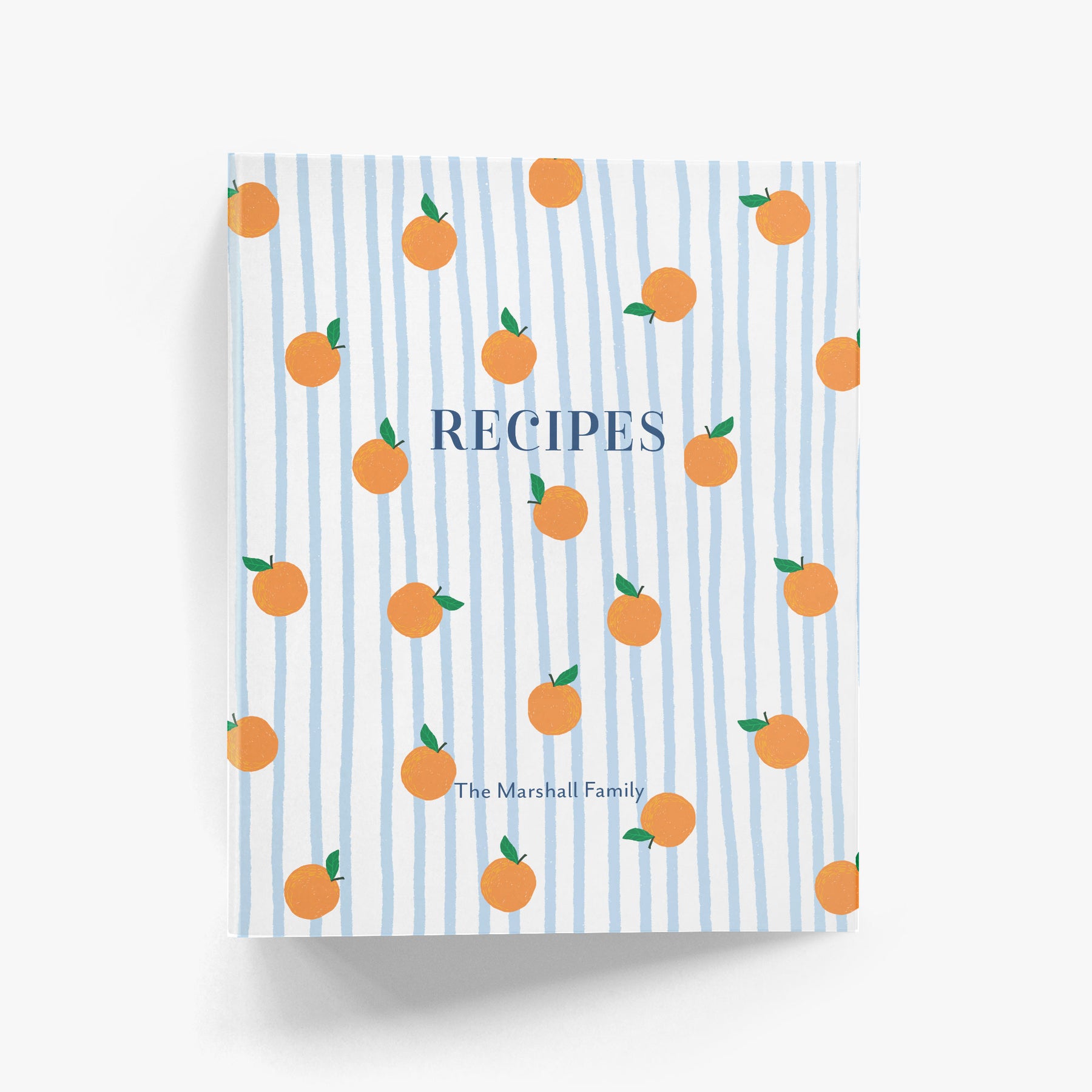 Stay organized in the kitchen with our custom recipe binder featuring an adorable brunch-inspired design of oranges over a blue and white striped background. Each binder is personalized with your name and includes a digital PDF recipe kit you can print and reprint at home - perfect for creating your own keepsake cookbook.