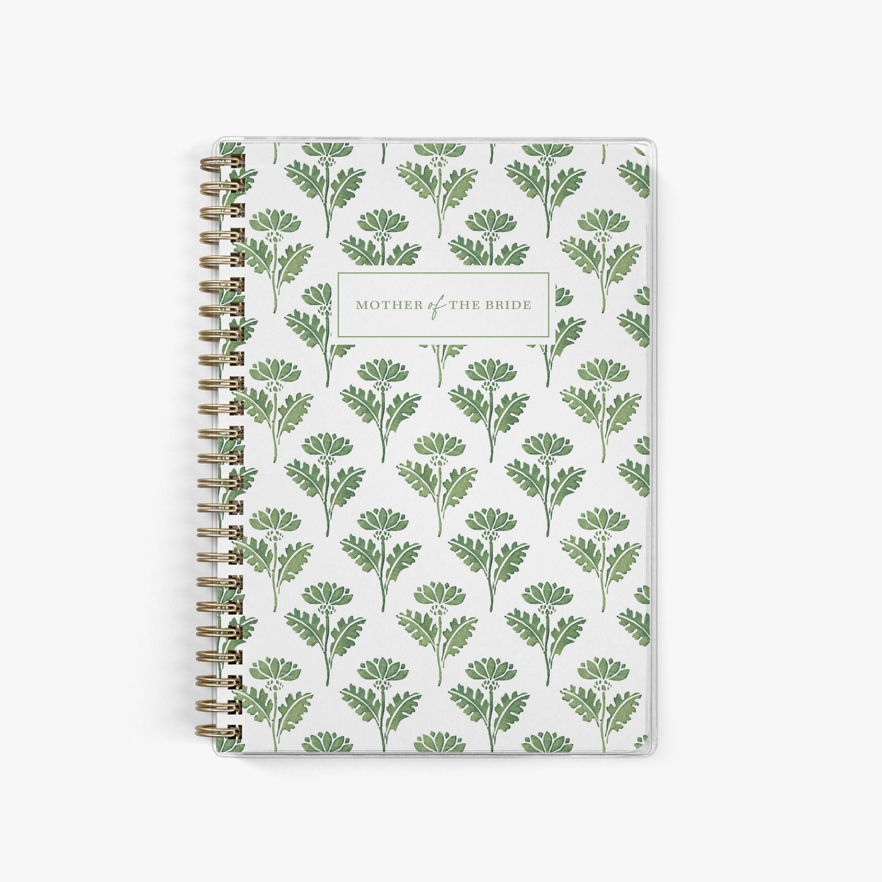 Shown in a fresh green floral block print, Mother of the Bride planners are exclusive to Keepsake Paper Co.